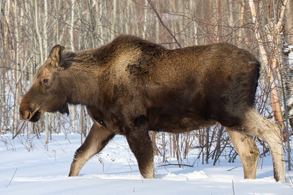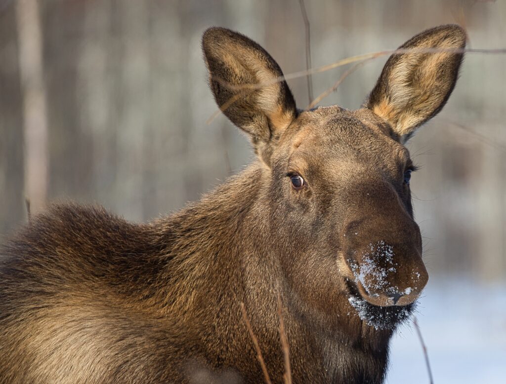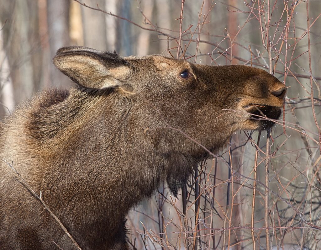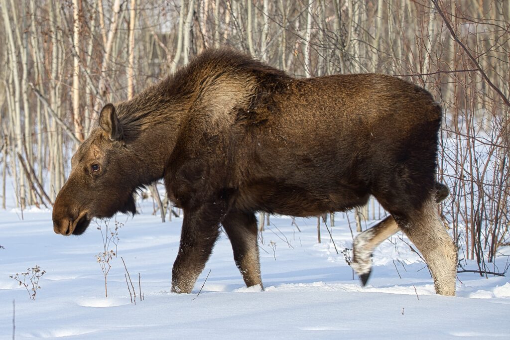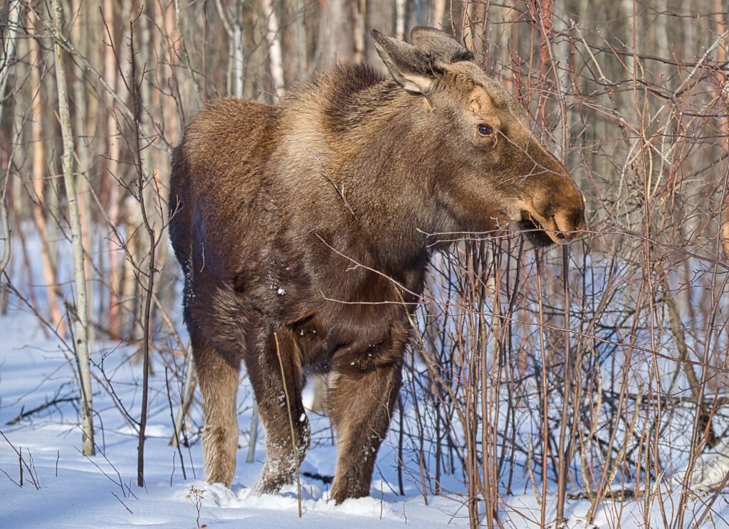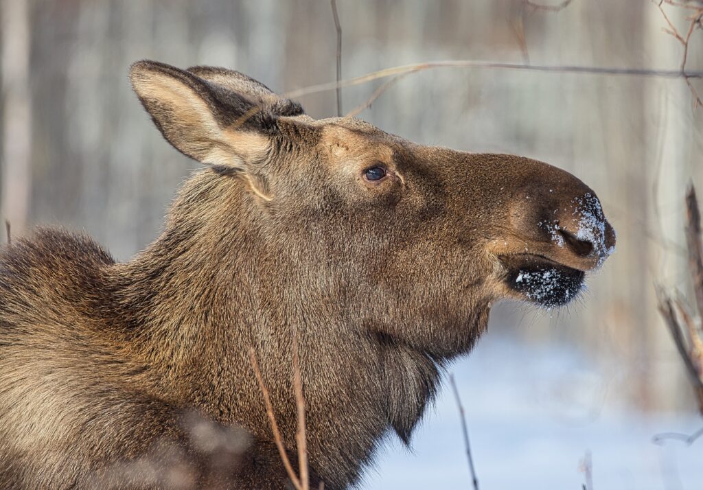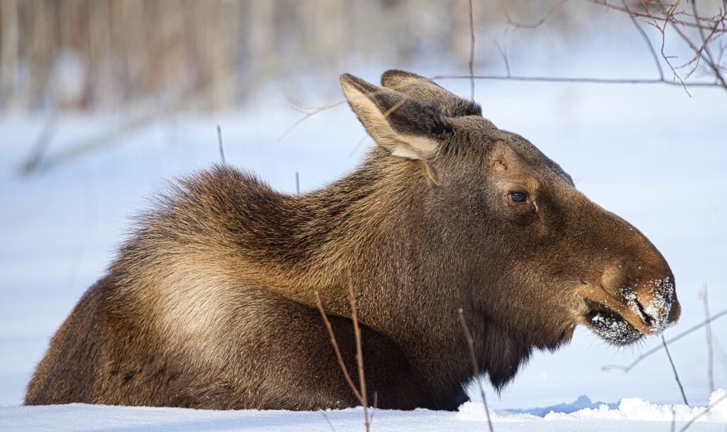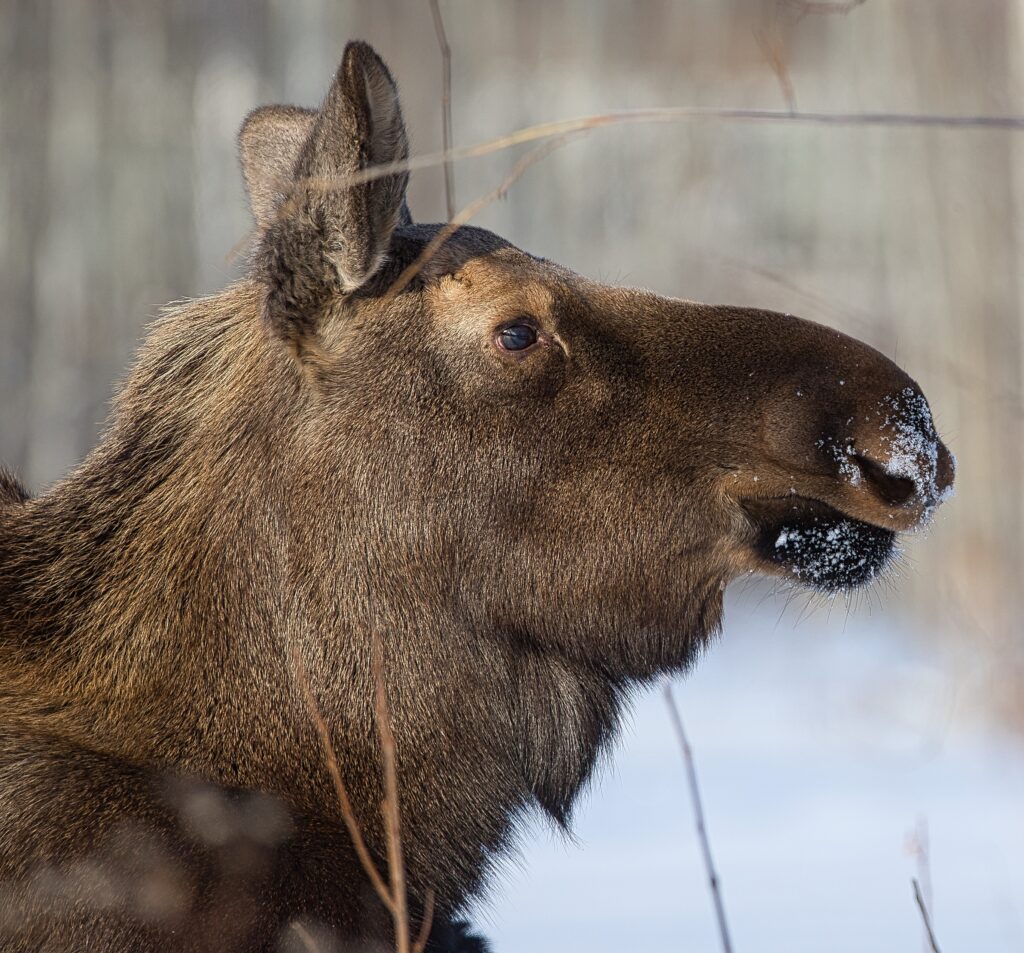 I spent over an hour sitting in the snow watching, I think she was taking a break while her 2 calves were down by the river. She sure was a beauty.