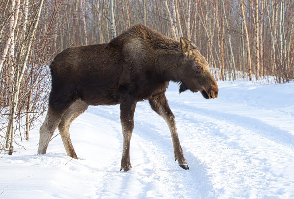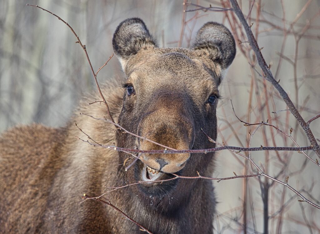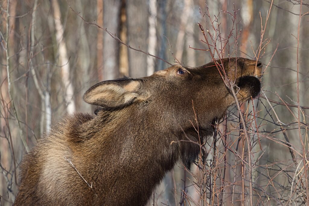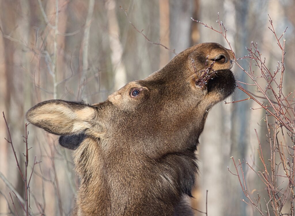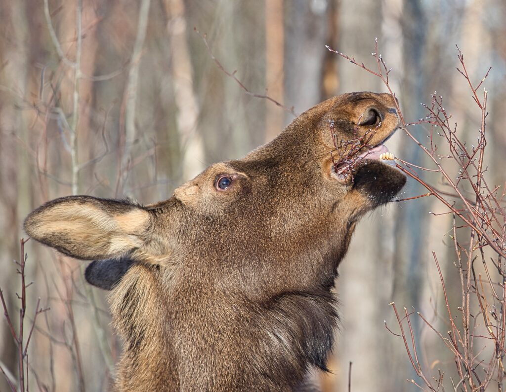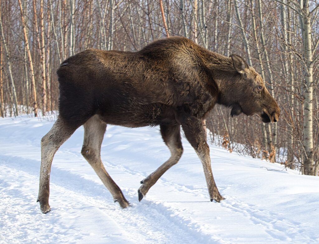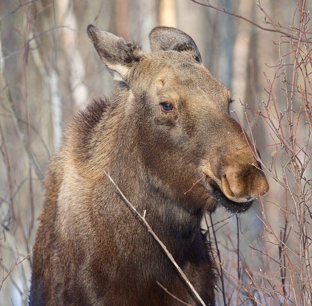 I spent over an hour sitting in the snow watching, I think she was taking a break while her 2 calves were down by the river. She sure was a beauty.